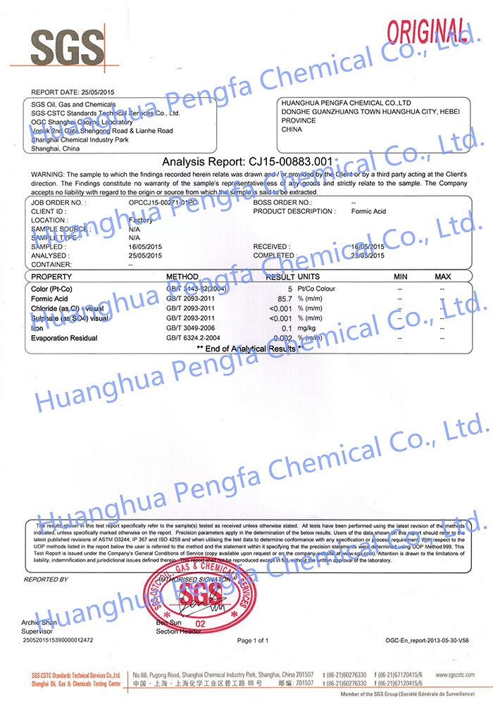 | Муравьиная Кислота | Wt% | Макс 0.05 | 0.001 |